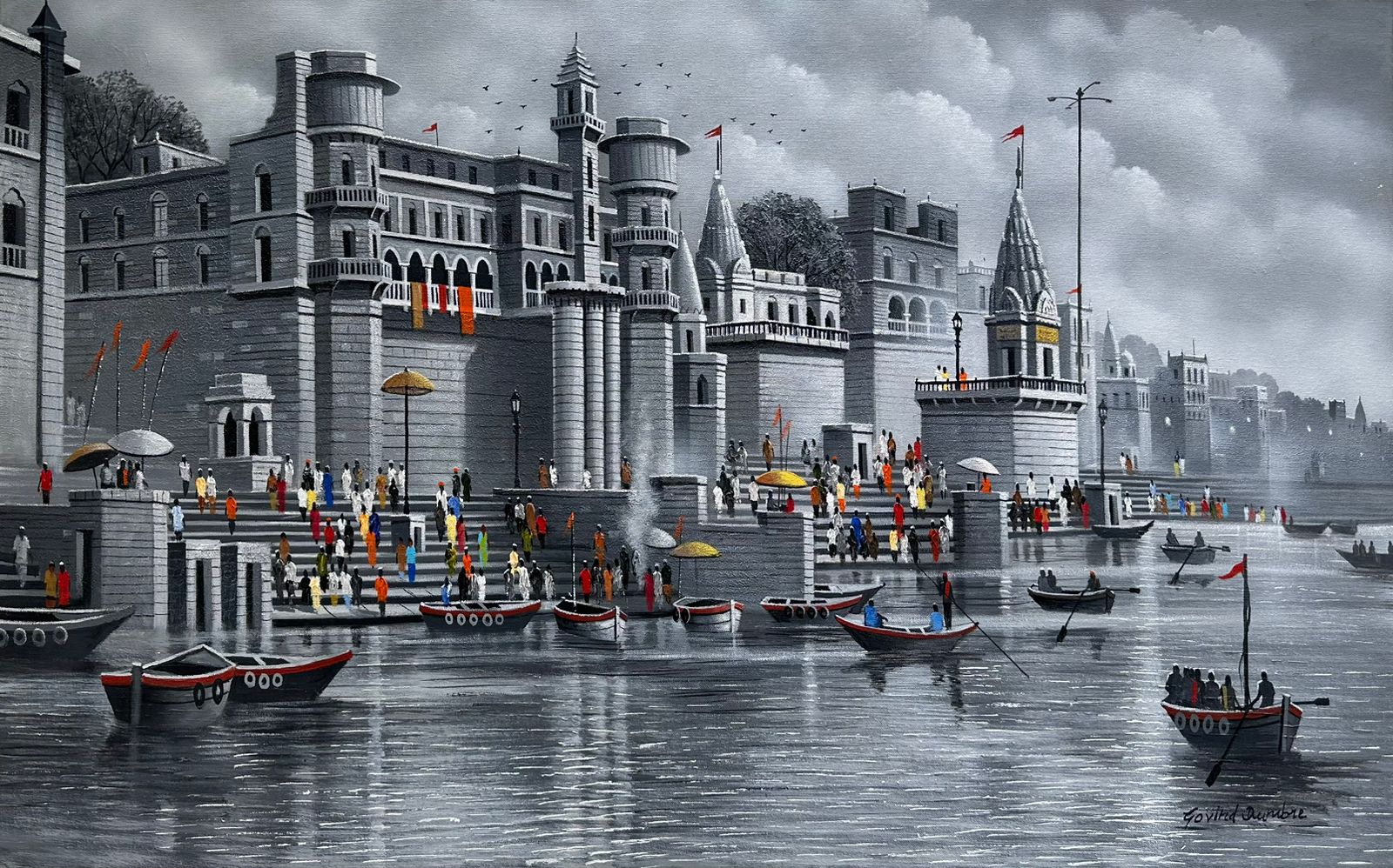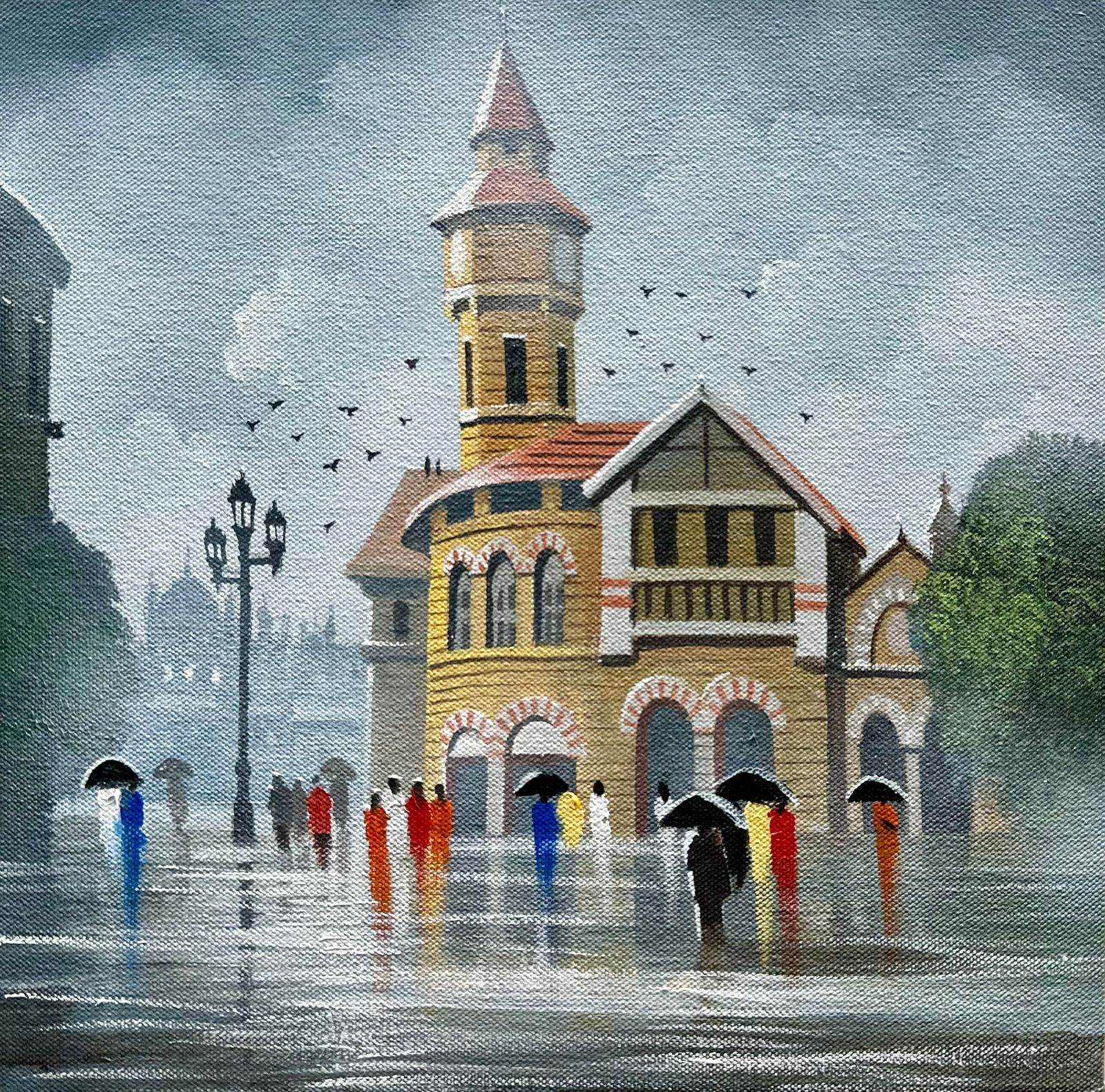 Govind Dumbre loves painting mainly the scenes of rainy rural India. He has been known for his paintings as the way he projects the streets of Konkan (Coastal India). He also has to his credit the lovely rains of Mumbai shown in the form of eye catching paintings . It is difficult to try to capture nature but Govind feels he’s up for the challenge.