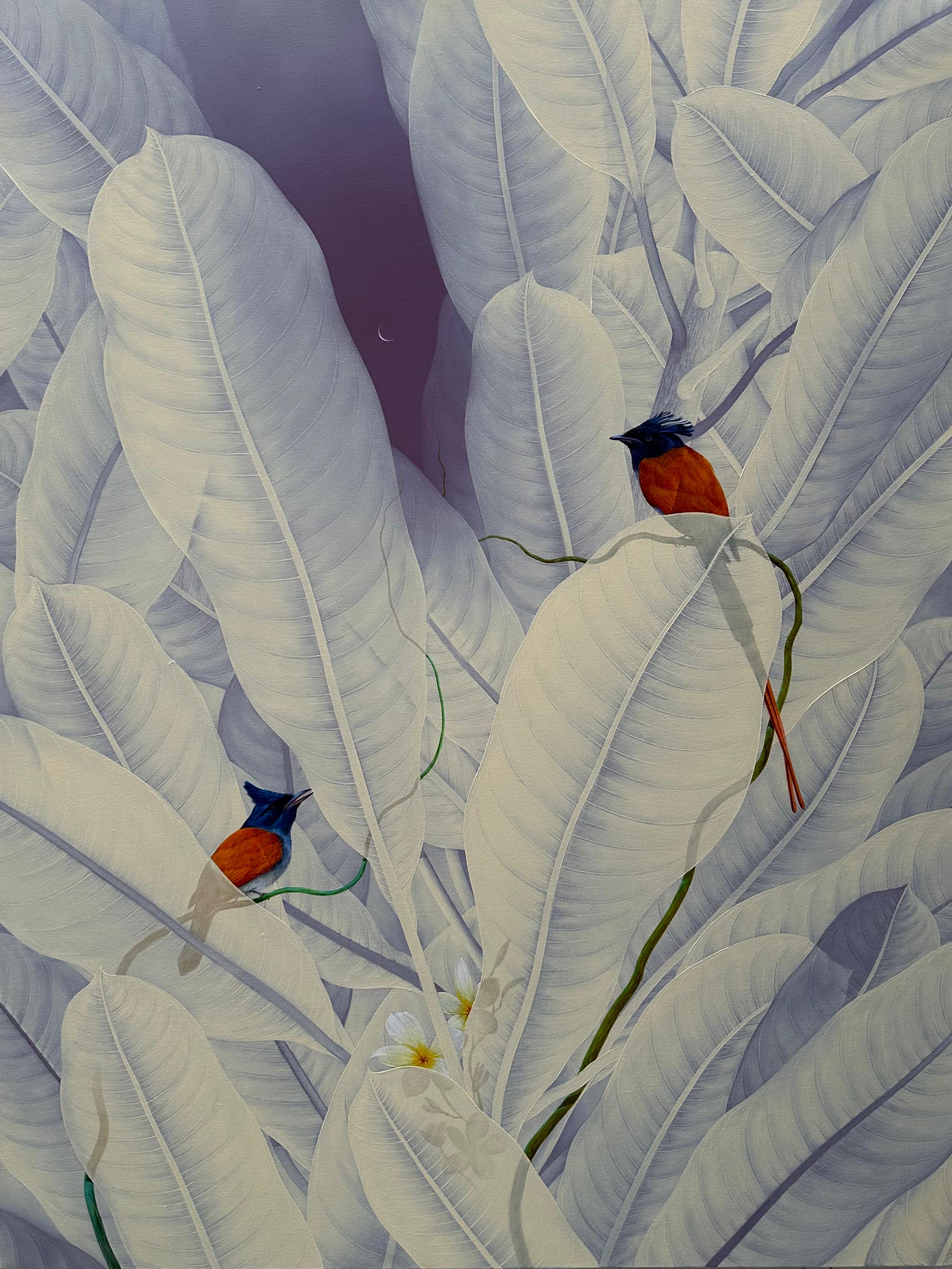 The first experience that one will get upon looking at any of Manish Chavda’s paintings is immensely meditative. He paints on the theme of contemporary-landscapes depicting birds and nature in their pure and organic form.